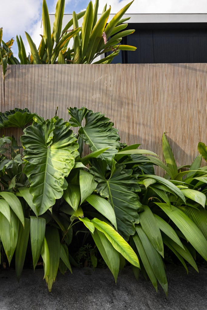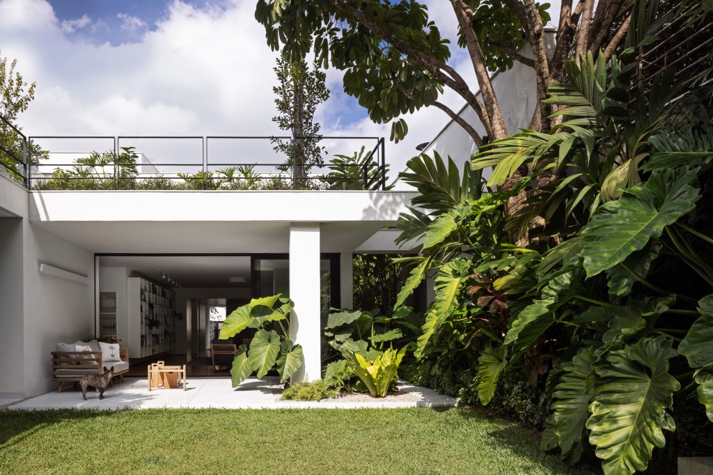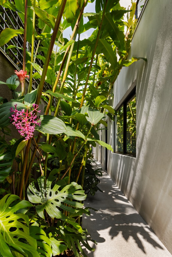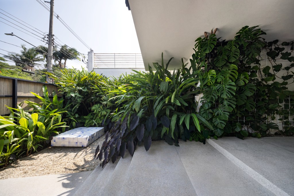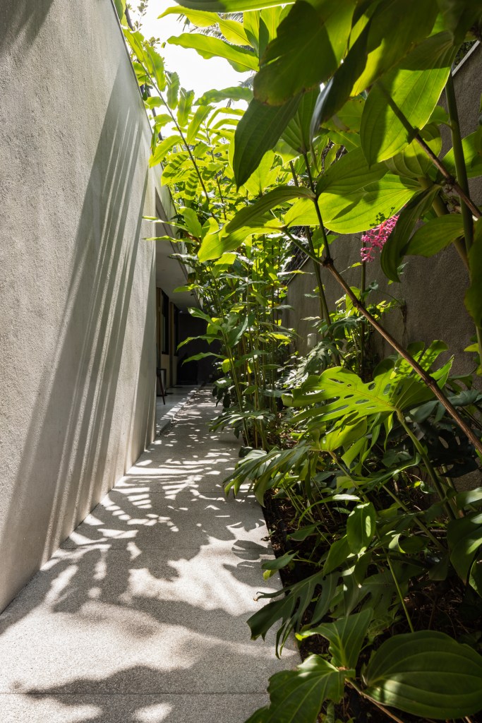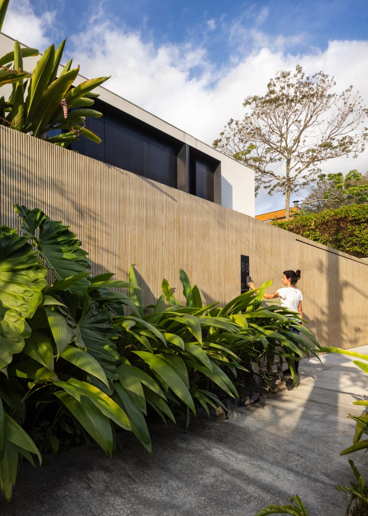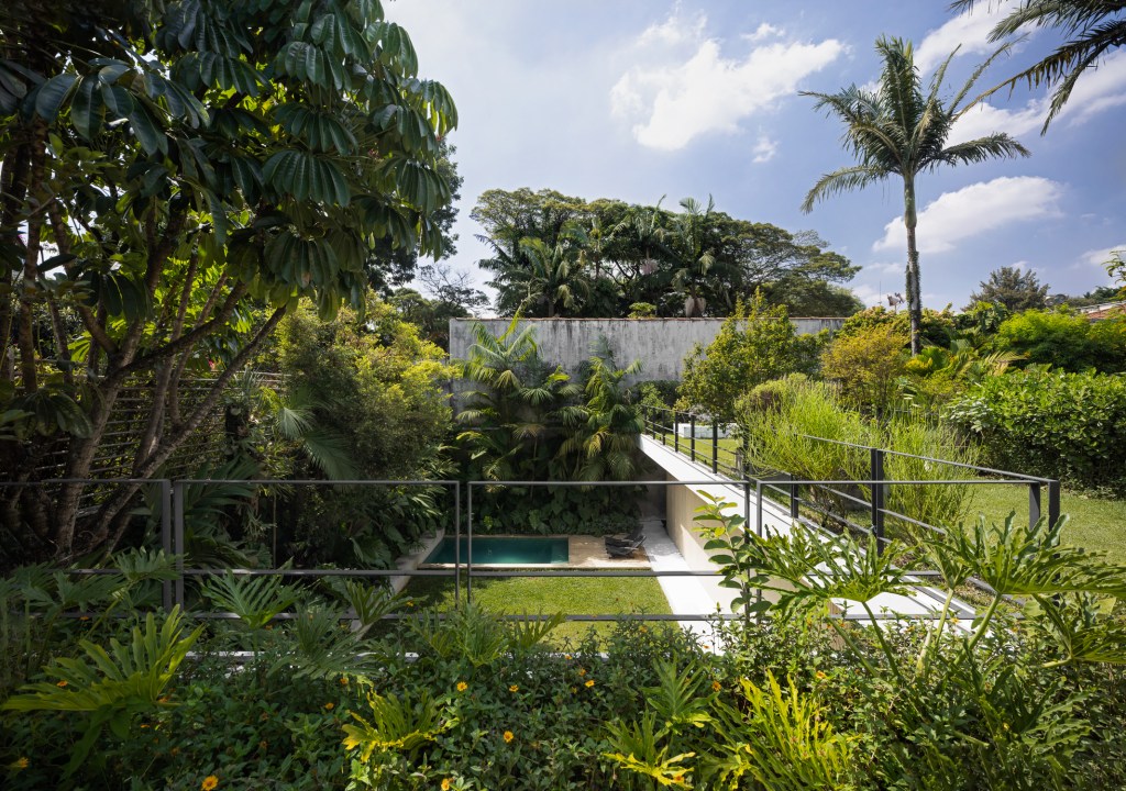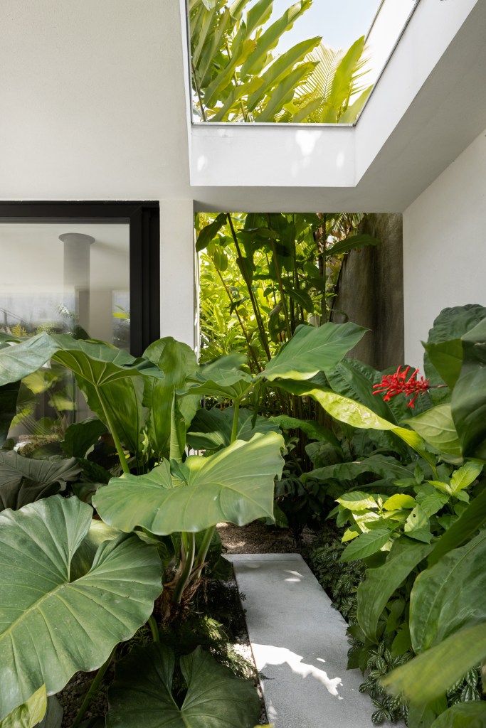 O projeto de paisagismo foi concebido por meio de uma metodologia de criação da paisagem que concilia a utilização de plantas tropicais autóctones de potencial paisagístico com espécies nativas do bioma da Mata Atlântica. Desta forma, o que se tem como objetivo é uma ambientação cênica marcante e vigorosa, que integre a casa com o bioma em que ela está inserida e que implemente