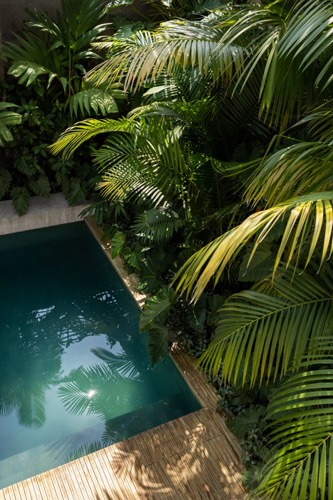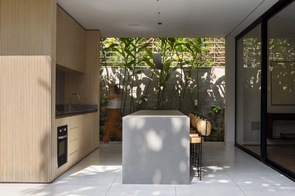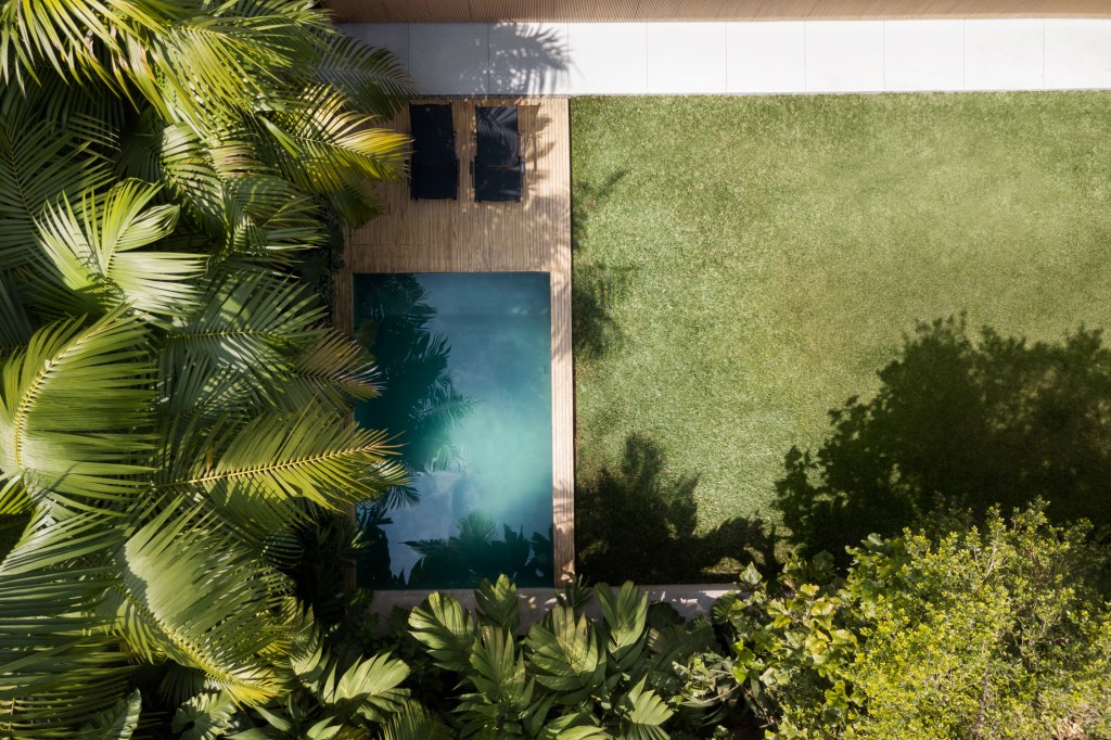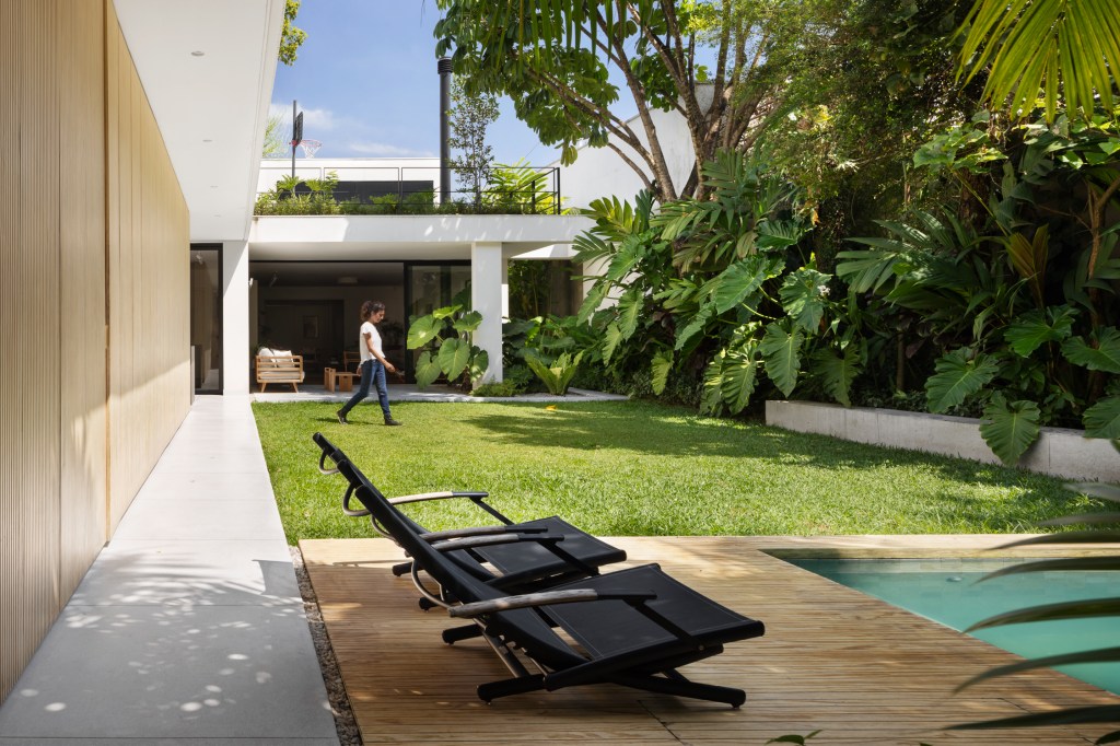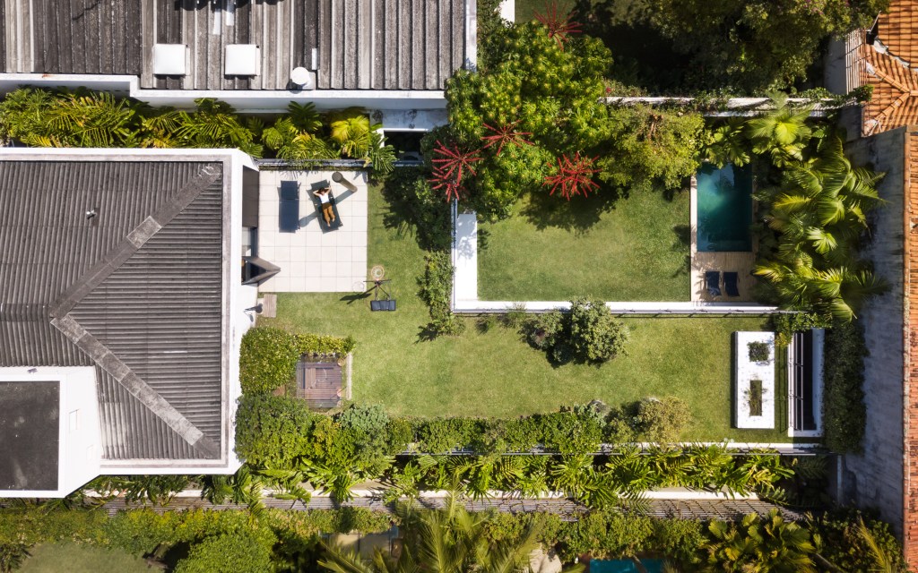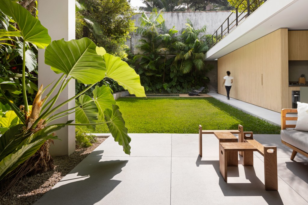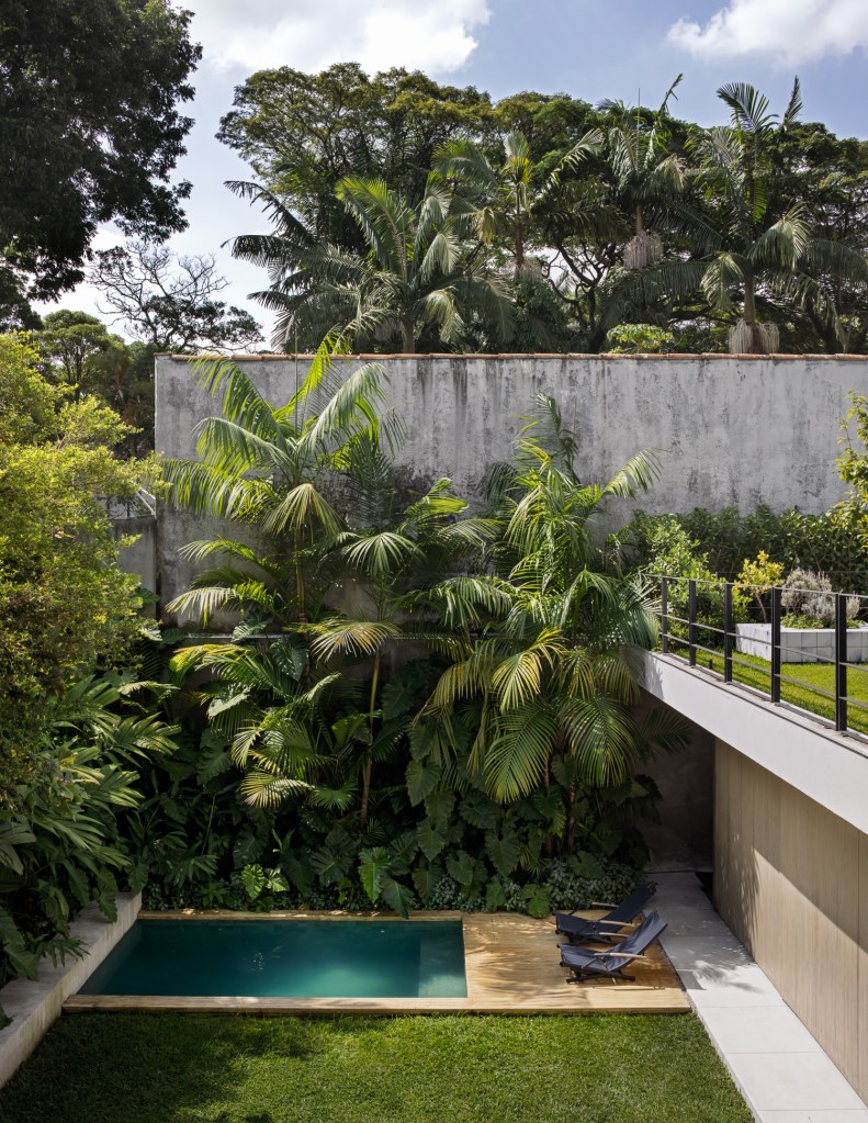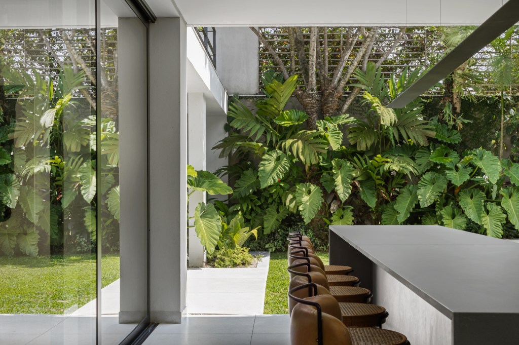 O projeto de paisagismo foi concebido por meio de uma metodologia de criação da paisagem que concilia a utilização de plantas tropicais autóctones de potencial paisagístico com espécies nativas do bioma da Mata Atlântica. Desta forma, o que se tem como objetivo é uma ambientação cênica marcante e vigorosa, que integre a casa com o bioma em que ela está inserida e que implemente